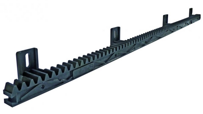Crémaillère nylon armé acier 4 attaches à visser, livrée avec vis et rondelles de fixation.